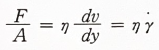 또한 이 속도구배는 전단변형률속도(γ')로 표현할 수 있으므로 그 관계는 다음 식과 같다.