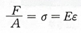 여기서 F는 힘, A 는 단면적, σ는 응력, ε는 변형률, 그리고 E는 탄성계수이다. 응력-변형률의 그래프가 선형적이라면, 이는 기계적 스프링 등에 적용되는 다음 식과 같은후크의 법칙(Hooke's law)이 적용된다고 볼 수 있다.