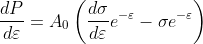 네킹 시작점에서 dP=0이므로 윗식으로부터 다음과 같은 관계식을 얻는다.
