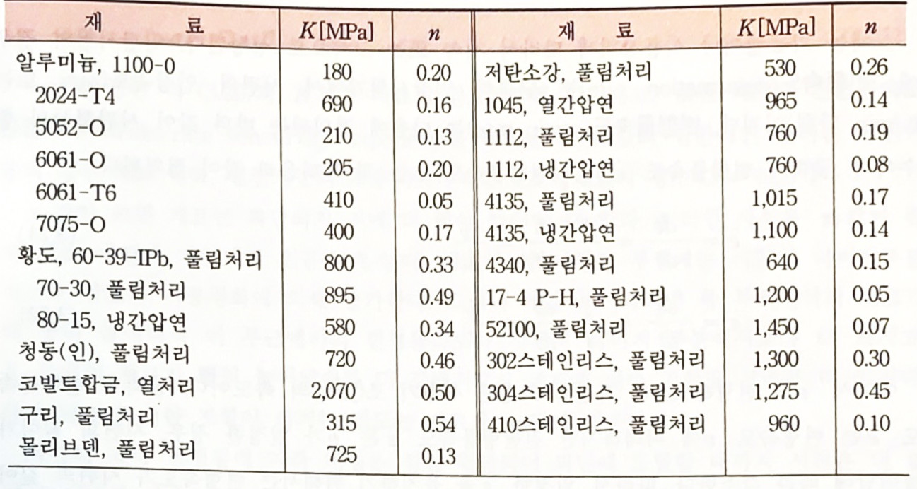 유동응력이 σ = Kεn로 표현될 경우에는 nKεn-1 = Kεn로부터,