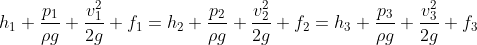 여기서 첨자 1, 2, 3은 시스템 내부의 서로 다른 세 위치를 나타내며, f 는 마찰손실이다.