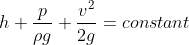여기서 h는 임의의 기준선에 대한 고도 p는 압력, v는 속도, ρ는 밀도, g는 중력가속도이다.