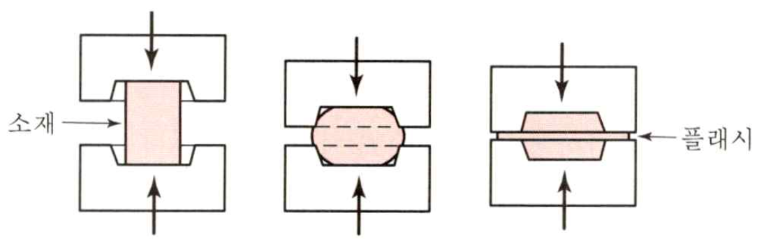 형단조에서 플래시를 발생하지 않고 소재가 금형공동부를 완전히 채우는 공정은 진정한 의미의 형단조, 즉 폐쇄단조라고 한다.