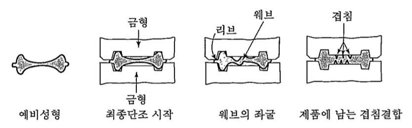 다음 그림에서처럼 웨브(web)에서 재료가 과다하면 단조 중에 좌굴이 생겨 겹침 현상이 발생할 수 있습니다.